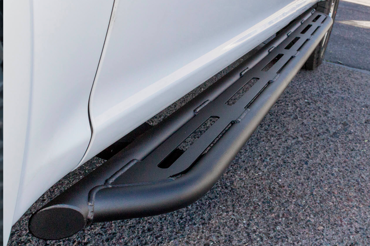 - Fixed Running Boards – Durable, full-length boards that provide a stable step and sleek profile.